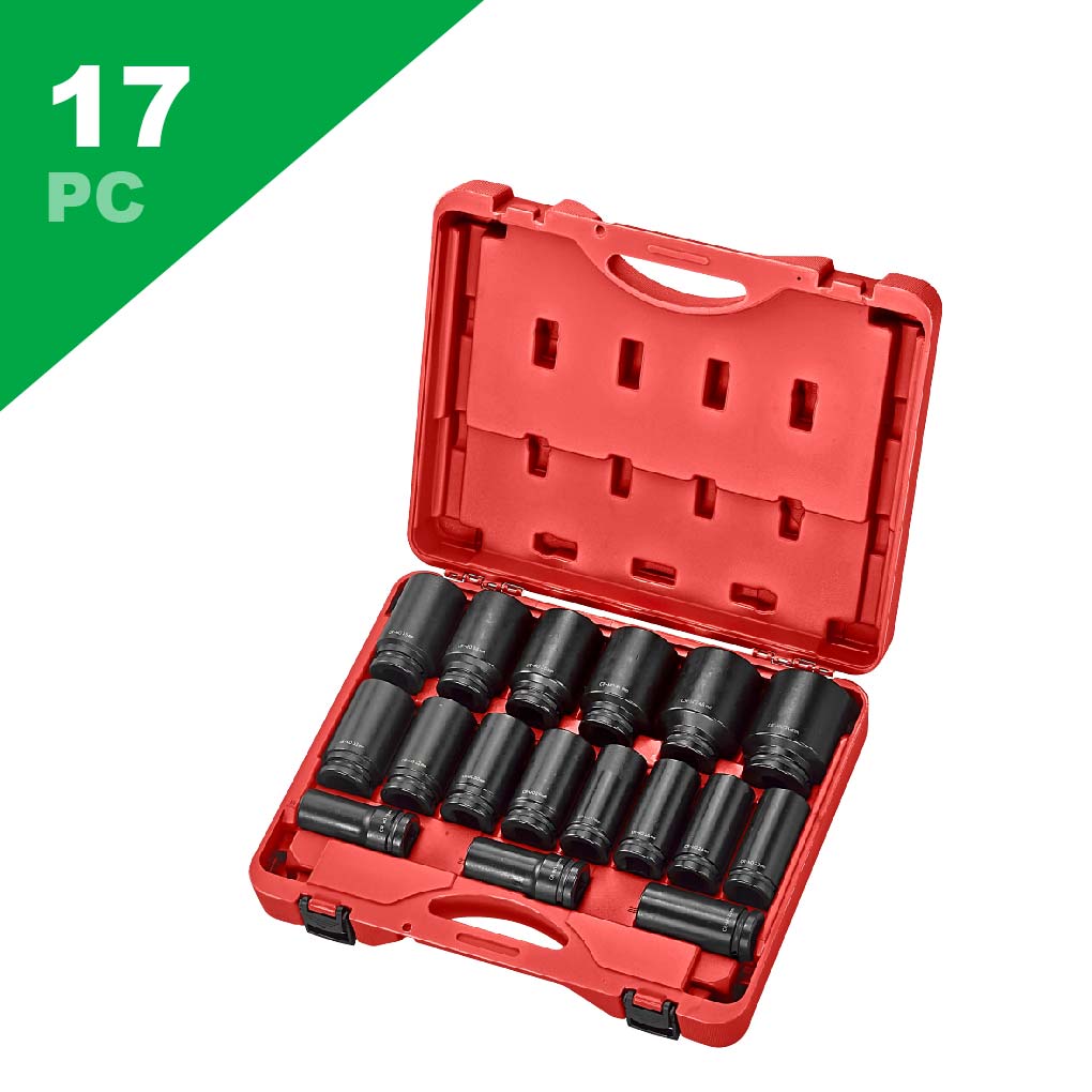 17 PC 3/4"Dr. Deep Impact Sockets: 19, 21, 22, 23, 24, 26, 27, 29, 30, 32, 33, 35, 36, 38, 41, 46, 50mm