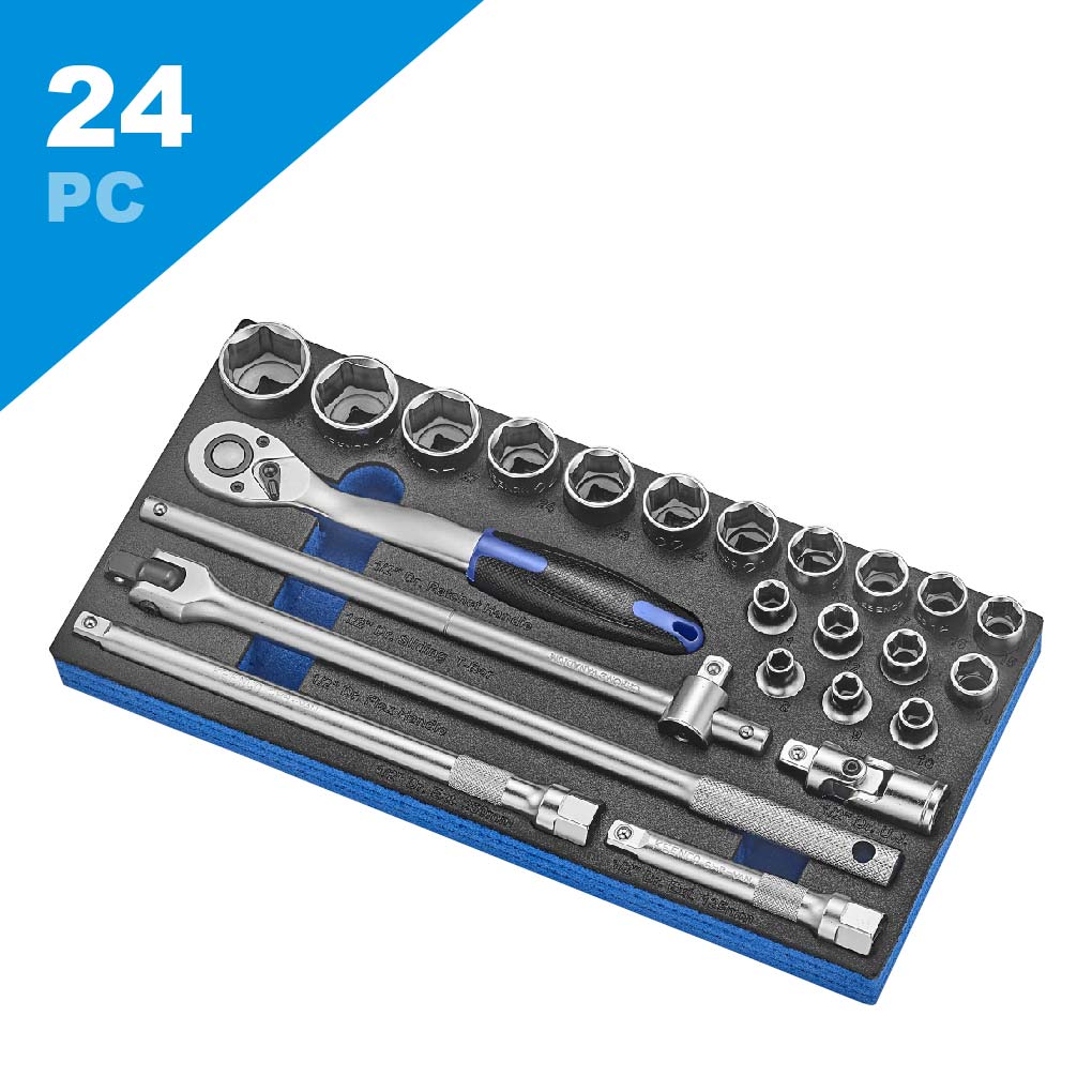 18PC 1/2"Dr. Sockets: 8, 9, 10, 11, 12, 13, 14, 15, 16, 17, 19, 21, 22, 23, 24, 27, 30, 32 mm